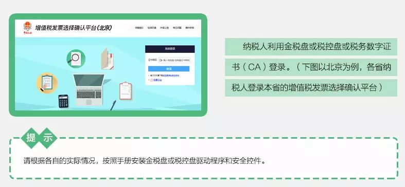 纳税人能随时随地通过CA身份认证在平台中勾选当期需抵扣或熊科的发票,作为纳税人每月进行申报抵扣的数据依据。